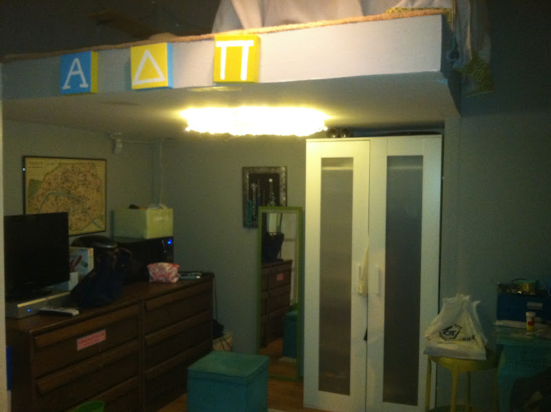 Remember where I noted here that there was a pully hanging from the ceiling for hanging clothes and lots of beer labels and holes in the wall? If you missed my post about why my daughter was moving into a fraternity house, you might want to check it out, here.