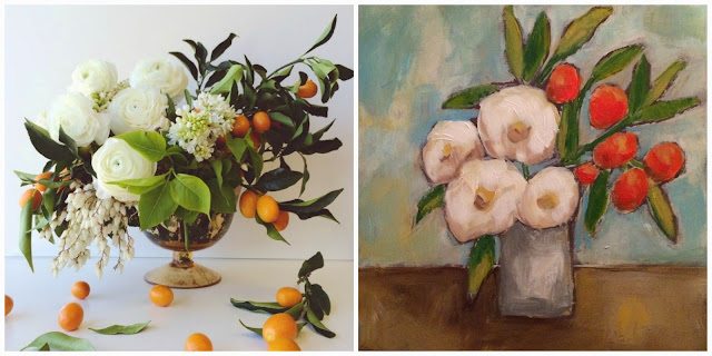 (Took lots of liberties with that re-creation! Just used the type of flower and fruit, rather than the footed bowl, etc. )